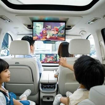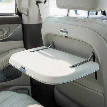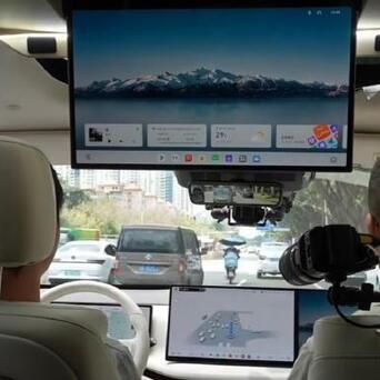 当时就坐在车里看完的发布会。渴了就从冰箱里拿出一瓶冷饮,累了就启用零重力座椅和按摩。冰箱彩电大沙发,全都有了!